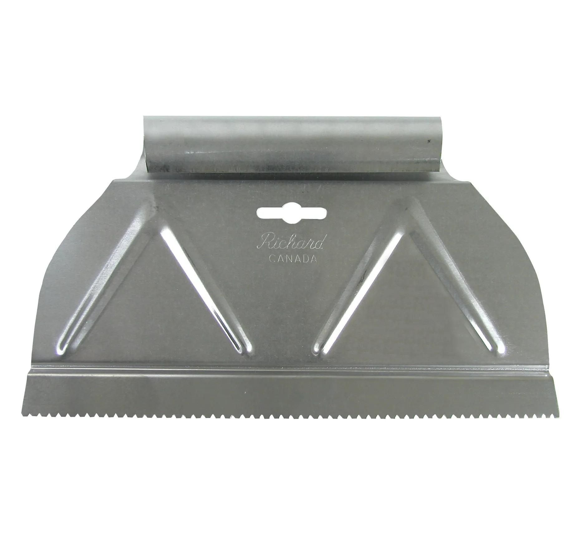 Truelle, dents en V, pour installation de lattes de vinyle.
