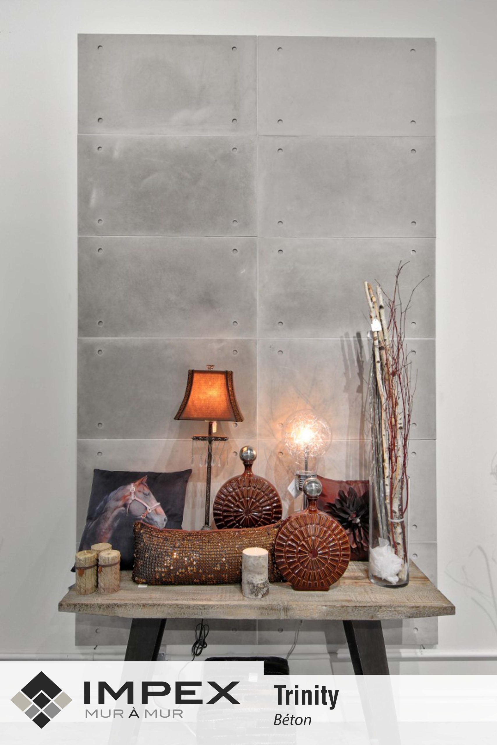 Une tuile de béton de 18''x32'' offerte avec ou sans trous qui s'installe au mur; elle ajoutera un côté naturel à votre décor!